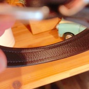 裏側にソフトレザーを使い、幅を広くする事で首周りに優しい作りとなっています。